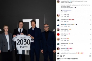 体育资讯2月13日讯 伊尔迪兹已经与尤文续约至2030年,球员也在社媒晒照发文纪念。
