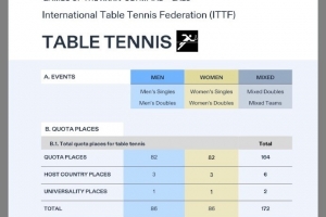 体育资讯2月13日讯 国际奥委会公布了2028年洛杉矶奥运会乒乓球资格分配方案,参赛人数限制方面,各协会男、女单打最多各2名选手参赛。