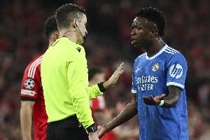 体育资讯2月18日讯 皇马在本轮欧冠1-0小胜本菲卡,维尼修斯打进制胜球后声称被种族歧视,此后比赛一度暂停。