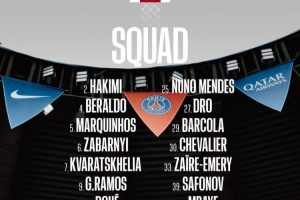 后卫:2-阿什拉夫、4-贝拉尔多、5-马尔基尼奥斯、6-扎巴尔尼、21-卢卡斯·埃尔南德斯、25-努诺·门德斯、51-帕乔