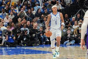 第三节比赛,班凯罗状态出色,面对错位防守各种干拔或者强突造杀伤,几乎弹无虚发带队咬住比分,他单节7中6(1中1),罚球4中4砍下17分2篮板1助攻。