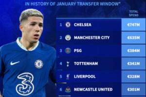 7.47亿欧!冬窗总支出:切尔西居榜首,前10英超8队,尤文上榜